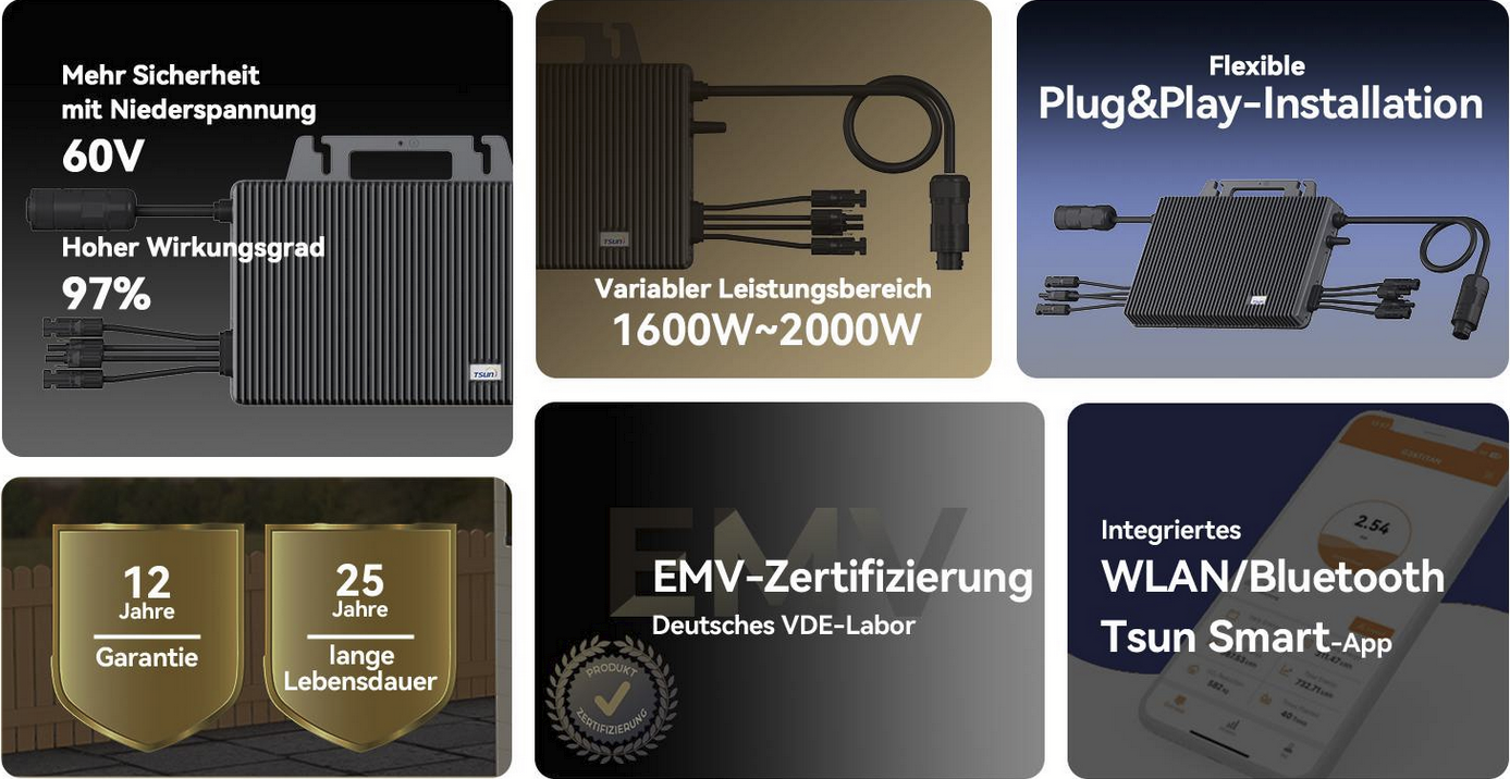 TSUN 2kW omvormer met regelbare regeling