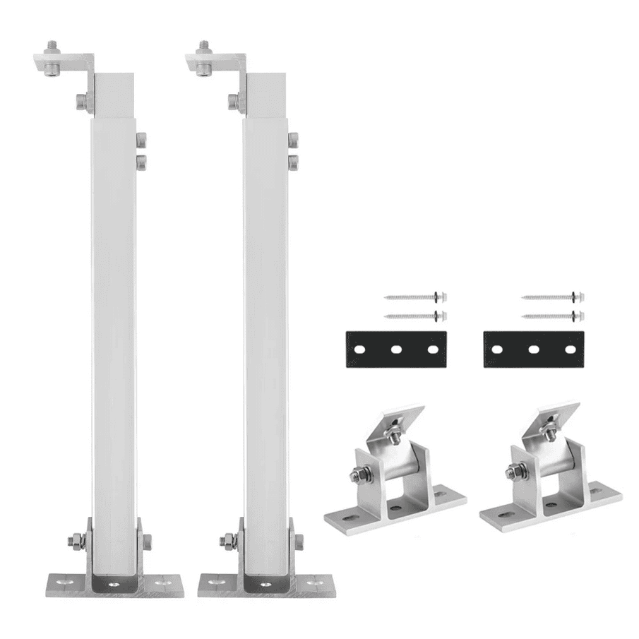 Stevige beugel voor wand- of vloermontage. De hoek is flexibel instelbaar en kan naar de zon worden gericht. Voor de montage zijn een boormachine en geschikte schroeven en pluggen nodig.